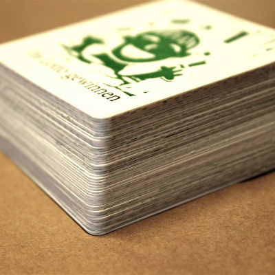 | Material | Bleisatz, Hochdruck, Kaschur, Kartenstanzung und Schachtelbau in Handarbeit in der Spielkartenfabrik Stralsund |