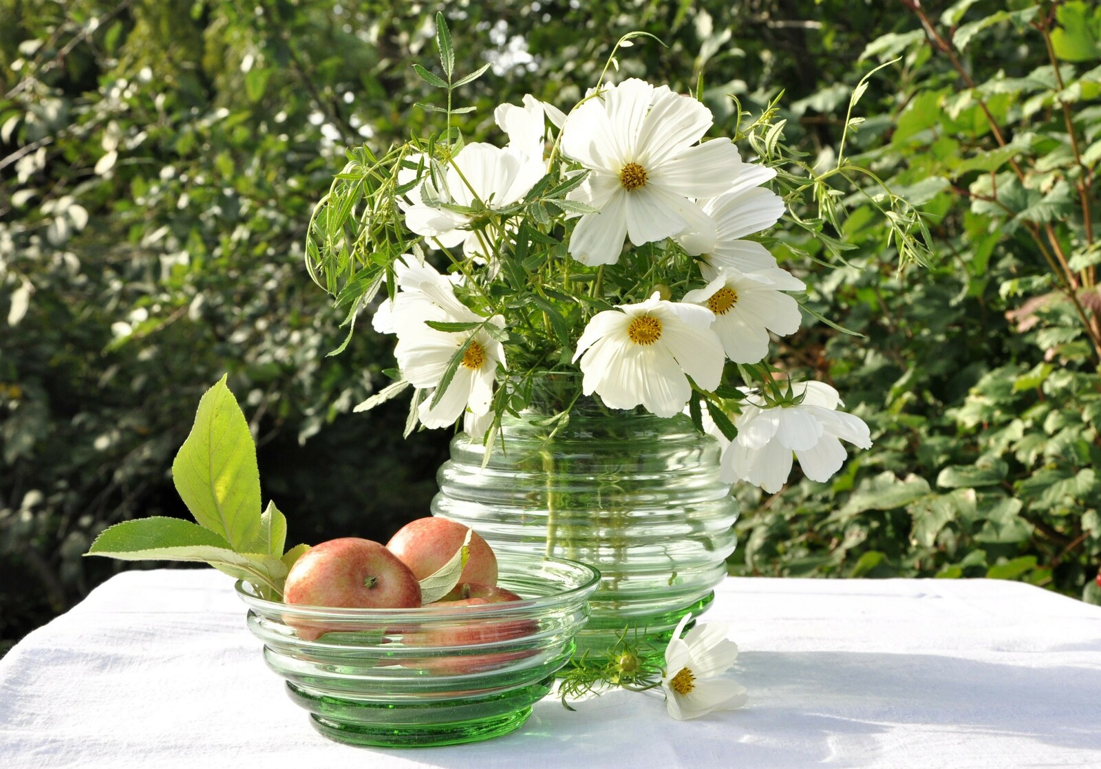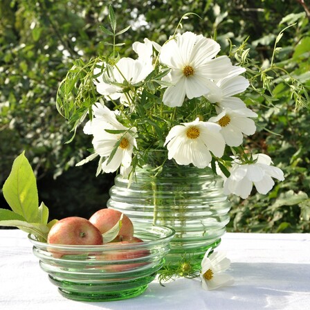 ![]() Vase Felicitas, grüne runde Rillenvase und Schale aus original Thüringer Waldglas im Grünen ©formost |