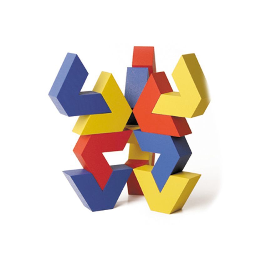 Ein v-förmiges Dreieck ist das was VIVO ausmacht. Mit diesem v-förmigen Grundbaustein entstehen aussergewöhnlich abstrakte Spielmöglichkeiten, die zeigen, dass in der Gesamtheit immer wieder neue Formen entstehen können. Der einzelne Baustein ist nur ein Element in der Zusammensetzung einer jeden sich neu entwickelnden Form. Was am Anfang des Spiels vielleicht noch nicht denkbar ist, ist im Endergebnis ein neues Ganzes, eine neue Form. Tatsächlich so wie im Leben. Wenn wir etwas beginnen, sehen wir vielleicht einzelne Teile, aber oft zeigt sich das Gesamtergebnis erst nach einer gewissen Zeit.