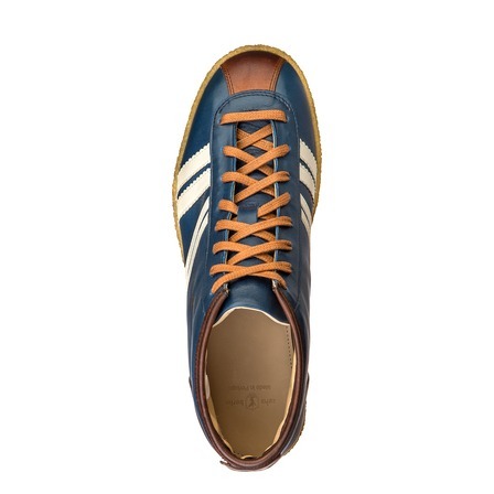 Als Erinnerung an die ehemalige DDR wurde der Trainer inspiriert durch Sport- und Freizeit Aktivitäten in Ostdeutschland. Die Kombination aus Kreppsohle und Glattleder ist die perfekte Balance zwischen Retro-Charme und echter Klasse. Abgerundet wird der Look mit der typischen Krepp-Plateau-Sohle, die nachhaltig aus handgezapftem Naturkautschuk gewonnen wird. Diese Farbkombination ist eine Variante aus weichem Kalbsleder. Klassische 8-Loch-Schnürung mit logogeprägter Zunge, Lasche und Schaft sind gepolstert, keine Ösen, verstärkter Zehen- und Fersenbereich dank elastischer Kappen.