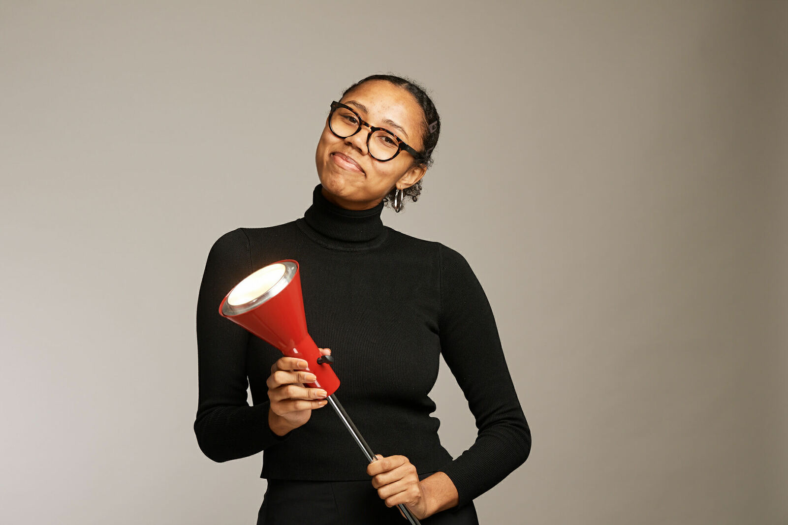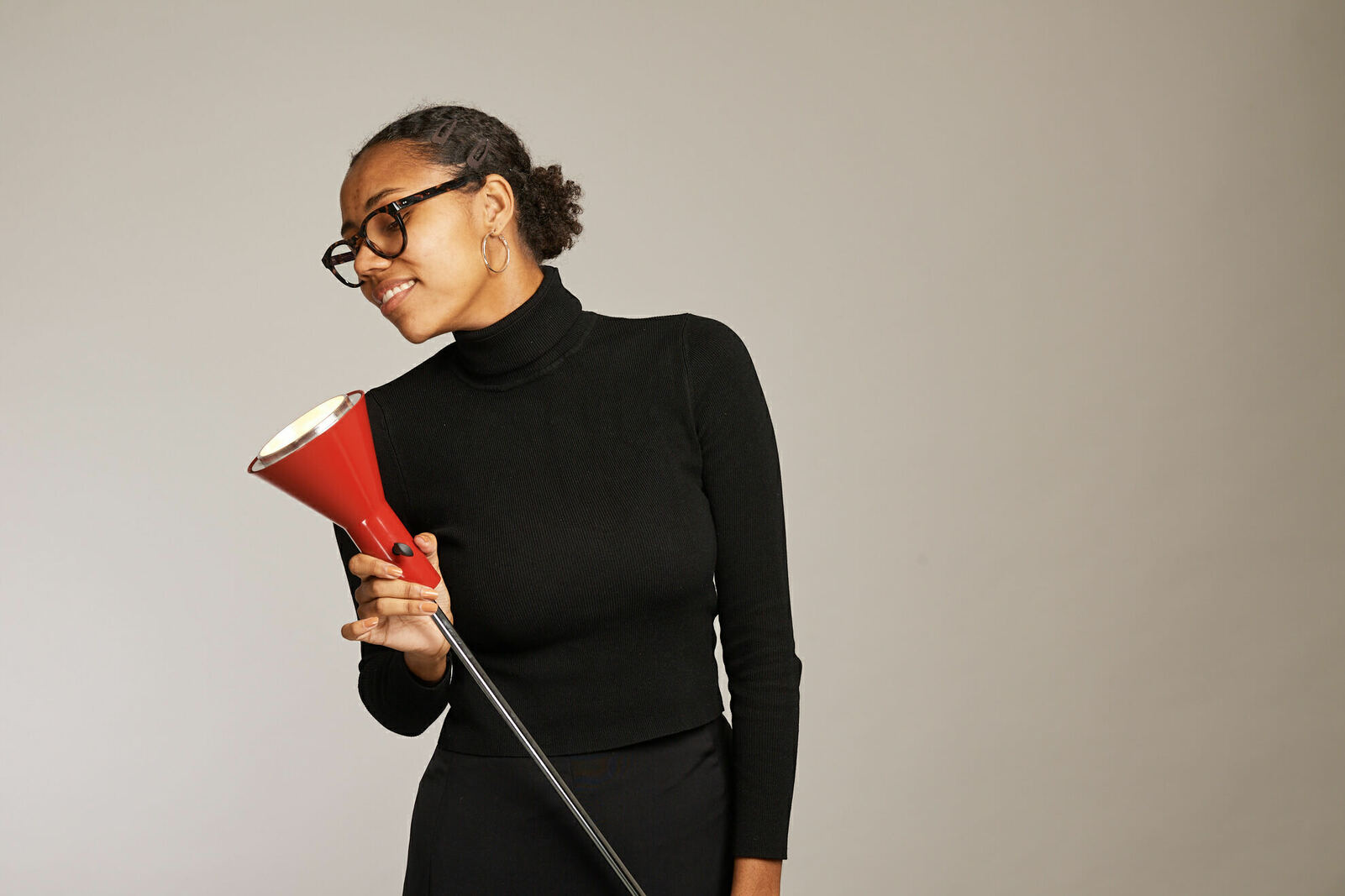 „Auf Kegeln aus Gusseisen stehen verchromte Stahlrohre mit trichterförmigen Schirmen… zur Deckenanstrahlung….“ (Zitat: Eiermann)