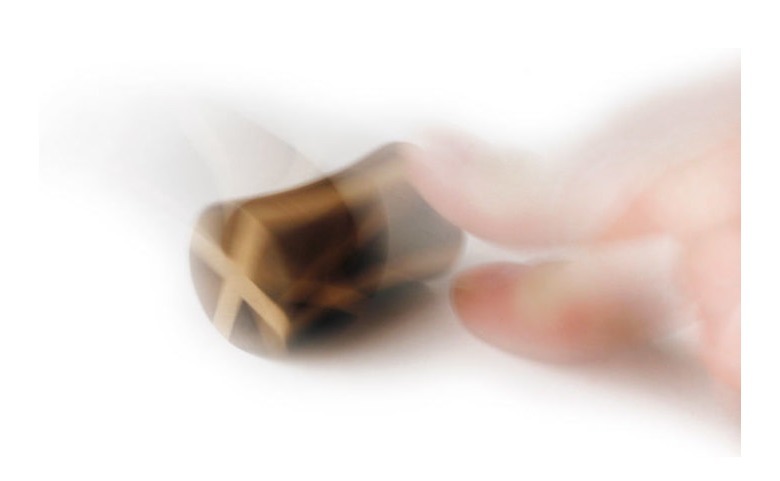 Fingerspitzen - Gefühl gefragt Sie bringen den liegenden Zylinder ins Rotieren, indem Sie einen Finger auf den linken oder rechten Rand legen und spickend nach unten, bzw. gegen sich bewegen. Das Drehen des Kreisels erzeugt ein optisches Phänomen.