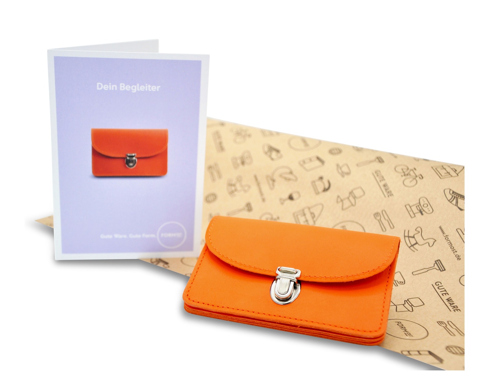 Bestandteile: Geldbörse Borsa von Papoutsi, Geschenkverpackung und von Hand geschriebene Grußkarte.
