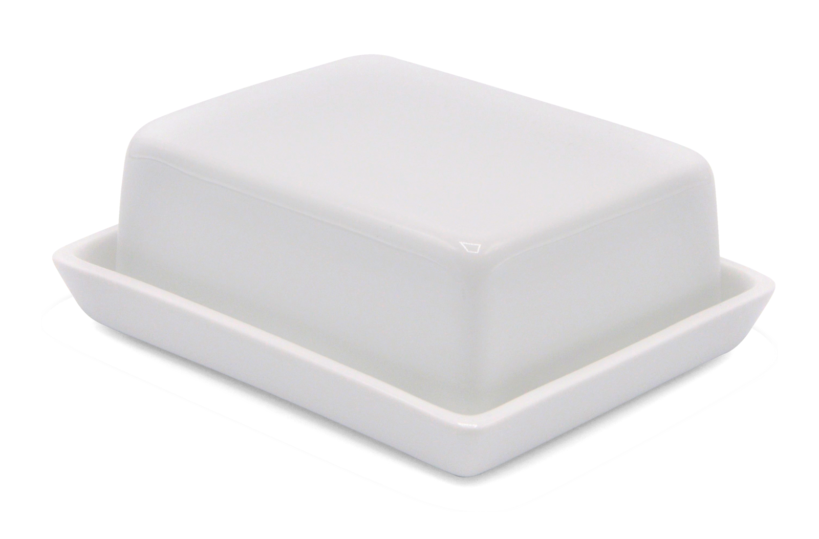 Eine schlichte weiße Butterdose aus Porzellan. Diese alte Form ist aus zwei Teilen gegossen und gehört gestern wie heute auf den Tisch.