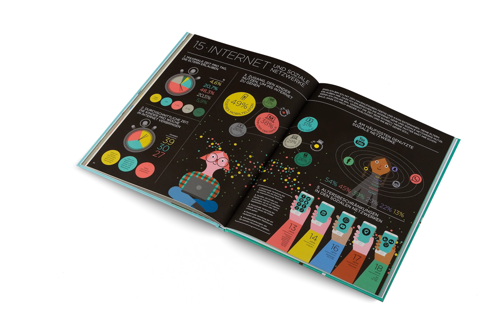 Wie leben die Menschen auf der anderen Seite der Welt? Was ist die beliebteste Sportart in Südkorea? Wie sieht ein Isländisches Frühstück aus? Und wo haben Kinder am meisten Hausaufgaben? Das Buch bedient sich farbiger, visuell anregender Infografiken zu verschiedenen Themen – von Haustypen, Haustieren und Hausaufgaben bis hin zu Sprachen, Sportarten und Vornamen – und zeigt Kindern, wie vielfältig und reich ihre Welt ist. Ich und die Welt richtet sich an eine globale Generation, die immer mehr digital verbunden und datengetrieben ist.