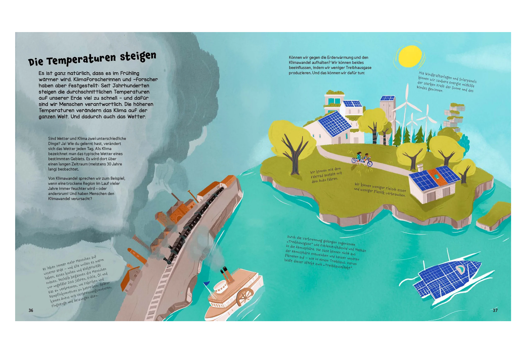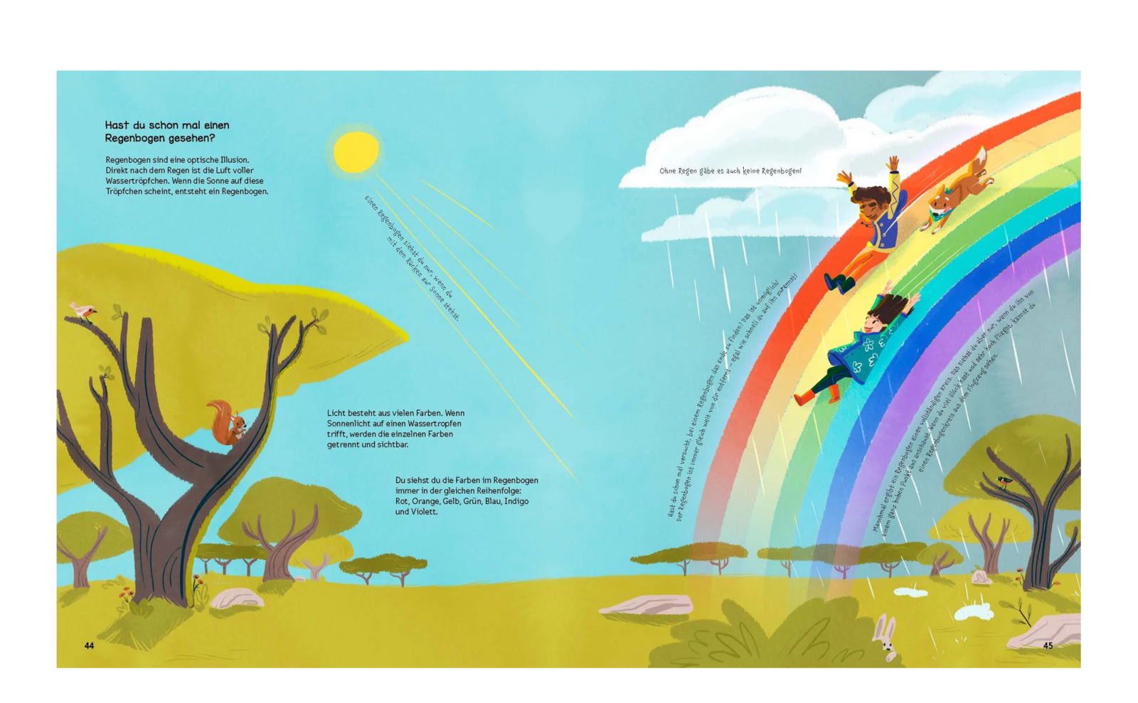 Warum verschwinden Felder und Wiesen oft im Morgennebel? Wie entstehen die Farben des Regenbogens? Warum krachen und zucken Donner und Blitz nur gemeinsam? Kinder stellen oft neugierige Fragen, die selbst viele Erwachsene gar nicht so genau beantworten können – Sonne, Wind und Regen hat viele schlaue Antworten parat. Dieses Buch voller farbenprächtiger Illustrationen, anschaulichen Beispielen und Anekdoten erklärt komplexe Vorgänge auf leicht verständliche Weise. Die Kinder folgen zwei liebenswerten Figuren und ihrem kleinen Hund von Seite zu Seite und erfahren unter anderem, wie eine Wetterstation funktioniert, und welche Auswirkungen die globale Erwärmung hat. Sonne, Wind und Regen erklärt Wetterphänomene über die Jahreszeiten hinweg. Ob pitsch-patsch-regennasse oder sonnige Tage – hier ist immer das richtige Wetter! Der britische Zoologe Steve Parker kennt sich aus mit den naturwissenschaftlichen Wundern unserer Welt. Wenn es um die Wissenschaft geht, ist seine Formel einfach: „Halte dich an die beiden grossen ‚I‘ – Information und Imagination.” Er ist Co-Autor und Herausgeber von über 300 Sachbüchern. Nach Space Kids ist dies sein zweites Buch bei Kleine Gestalten.