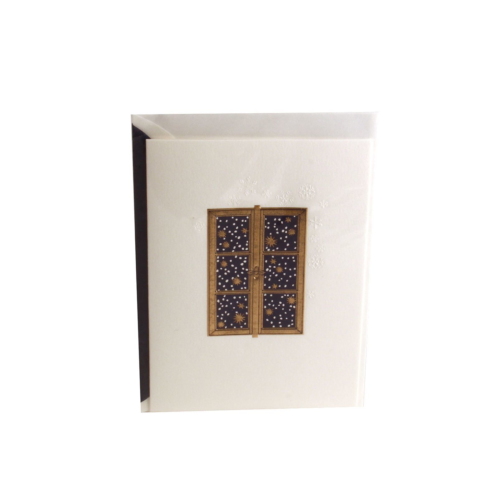 | Material | ungestrichener Karton, bedruckt und geprägt, 300g, Kuvert mit farigem Einsatzpapier |
