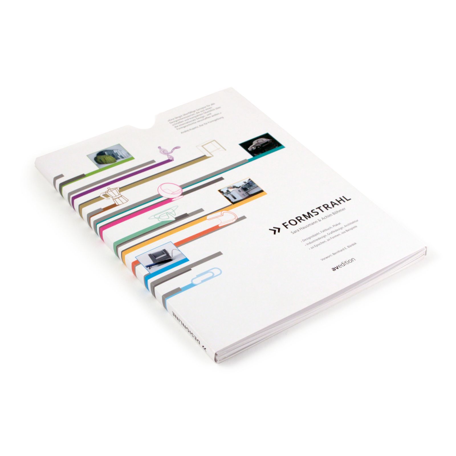Der Formstrahl ist eine 4,5 Meter lange Designgeschichte, die man entweder als Leseheft oder auch auseinandergeklappt als großes Übersichtsplakat nutzen kann. Er zeigt die Geschichte des Designs anhand wichtiger Epochen und exemplarischer Formen – sei es ein Nierentisch von Isamu Noguchi als Beispiel für Organic Design oder der Grundriss von Daniel Libeskinds Jüdischem Museum in Berlin stellvertretend für den Dekonstruktivismus. Zahlreiche Fotos und Informationen zu herausragenden Ereignissen, Werken und Gestaltern jeder Epoche begleiten die Designgeschichte. Sie machen den Formstrahl exemplarisch und produktsprachlich bedeutsam. Der Formstrahl ist interdisziplinär und synoptisch, er umfasst Industrie-, Grafikdesign und Architektur. Der dokumentierte Zeitraum beginnt mit der industriellen Revolution.