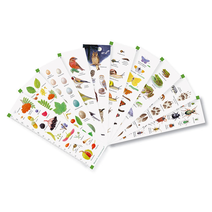 | Content | 10 Motive: Früchte, Blätter von Laubbäumen, Vogeleier, Finken, Schnecken, Schmetterlinge, Frösche, Eulen, Tierspuren und Käfer |