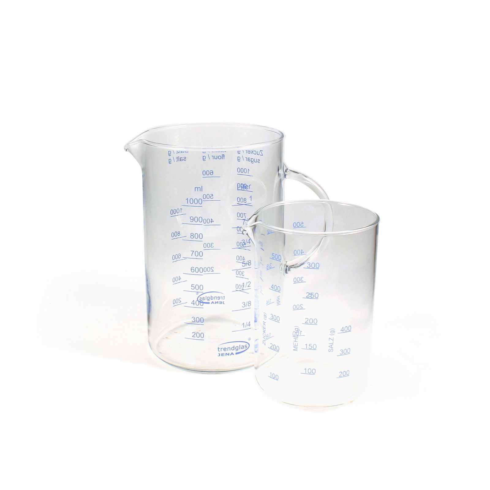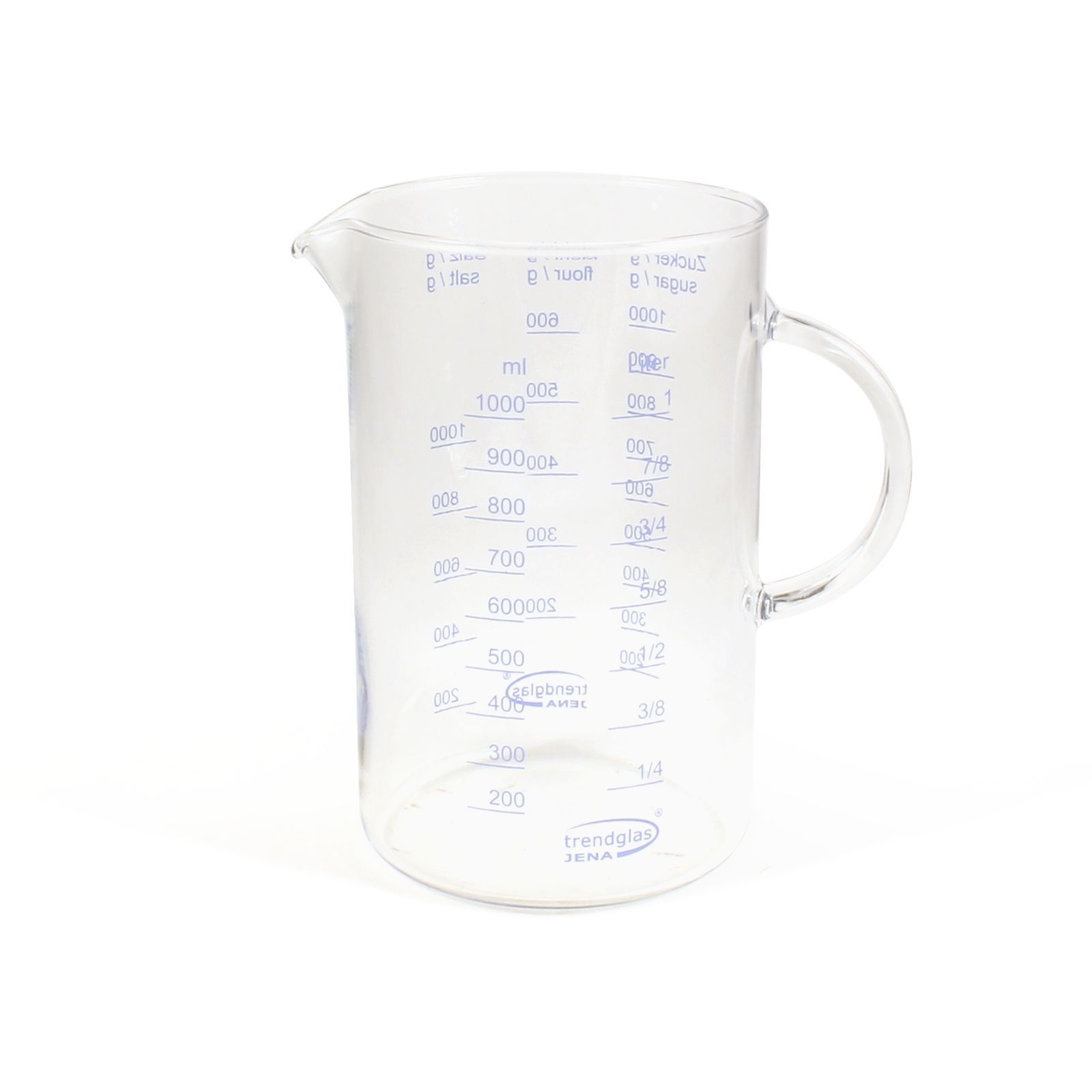 Die Messbecher von Trendglas Jena werden in echter Laborqualität hergestellt. Aus hitzebeständigem Borosilikatglas eignet er sich bestens für Mikrowellen und die Zubereitung von warmen Speisen.