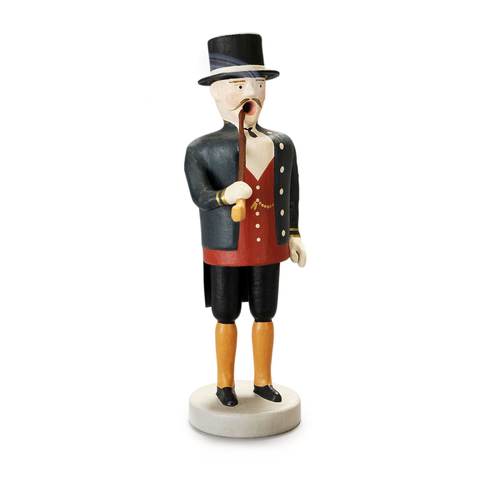 Der Räuchermann wurde um 1830 erstmals erwähnt, seine Herstellung und sein Gebrauch sind heute ein fester Bestandteil der erzgebirgischen Volkskunst und des erzgebirgischen Brauchtums der Weihnachtszeit. Dazu wird ein angezündetes Räucherkerzchen auf den unteren Teil der zweigeteilten Holzfigur gestellt. Der obere Teil ist ausgehöhlt und wird auf den ersten Teil gesteckt. Das Räucherkerzchen brennt im Inneren des meist gedrechselten Räuchermannes ab, der Rauch steigt dabei nach oben und tritt aus dem Mundloch aus. Vor der Erfindung des Räuchermanns stellten die Erzgebirger die Räucherkerzchen offen hin.
