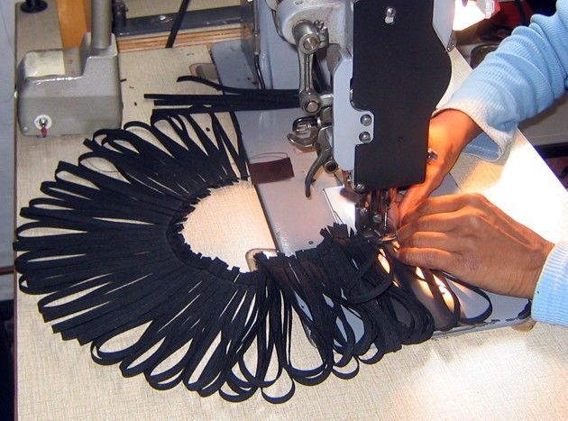 auf der Nähmaschine seines Großvaters, einem gelernten Sattlermeister.