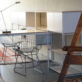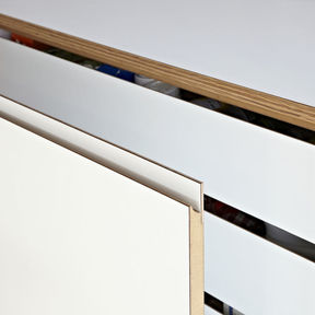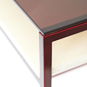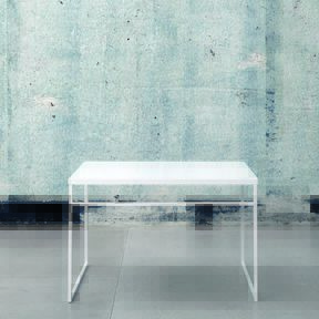 Dies erklärt den unverkennbar architektonischen Ansatz der Arbeiten. Bei neue tische verfließen die Grenzen zwischen Möbeldesign und Architektur - so erscheinen die Möbel nicht als Objekte, die im Raum abgestellt sind, sondern fügen sich in diesen ein bis hin zur gegenständlichen Ausdehnung des Raumes selbst.