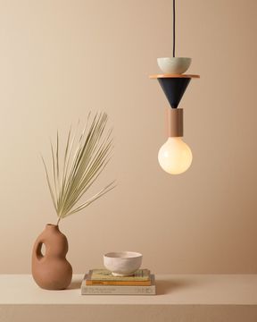 Kaskad hat eine rohe, farbige Keramikoberfläche. Die Hängeleuchte ist in zwei verschiedenen Größen und drei Farben erhältlich und wird durch ein farblich abgestimmtes Textilkabel ergänzt. Die Kaskad kann sowohl als Einzelstück als auch aufgehängt in einer wolkenartigen Familie von Kaskad-Lampen verwendet werden.