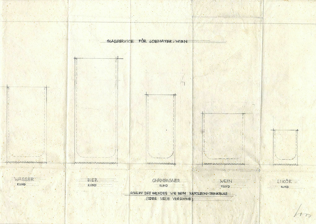 Erst am Ende seines Lebens entwarf Loos auch für Lobmeyr. 1931 entstanden die Aufrisszeichnungen für eine Gläserreihe - basierend auf der Grundform des Rechtecks. Daraus entwickelte sich das Trinkservice No. 248, das zu einem der bekanntesten des 20. Jahrhunderts wurde.