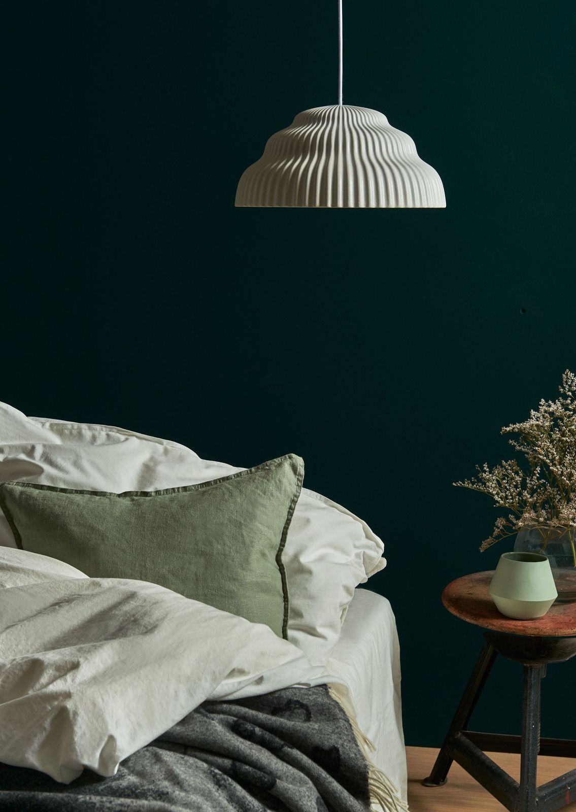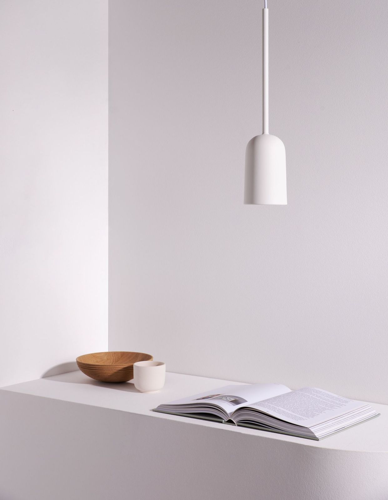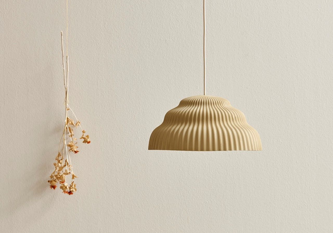 Kaskad hat eine rohe, farbige Keramikoberfläche. Die Hängeleuchte ist in zwei verschiedenen Größen und drei Farben erhältlich und wird durch ein farblich abgestimmtes Textilkabel ergänzt. Die Kaskad kann sowohl als Einzelstück als auch aufgehängt in einer wolkenartigen Familie von Kaskad-Lampen verwendet werden.