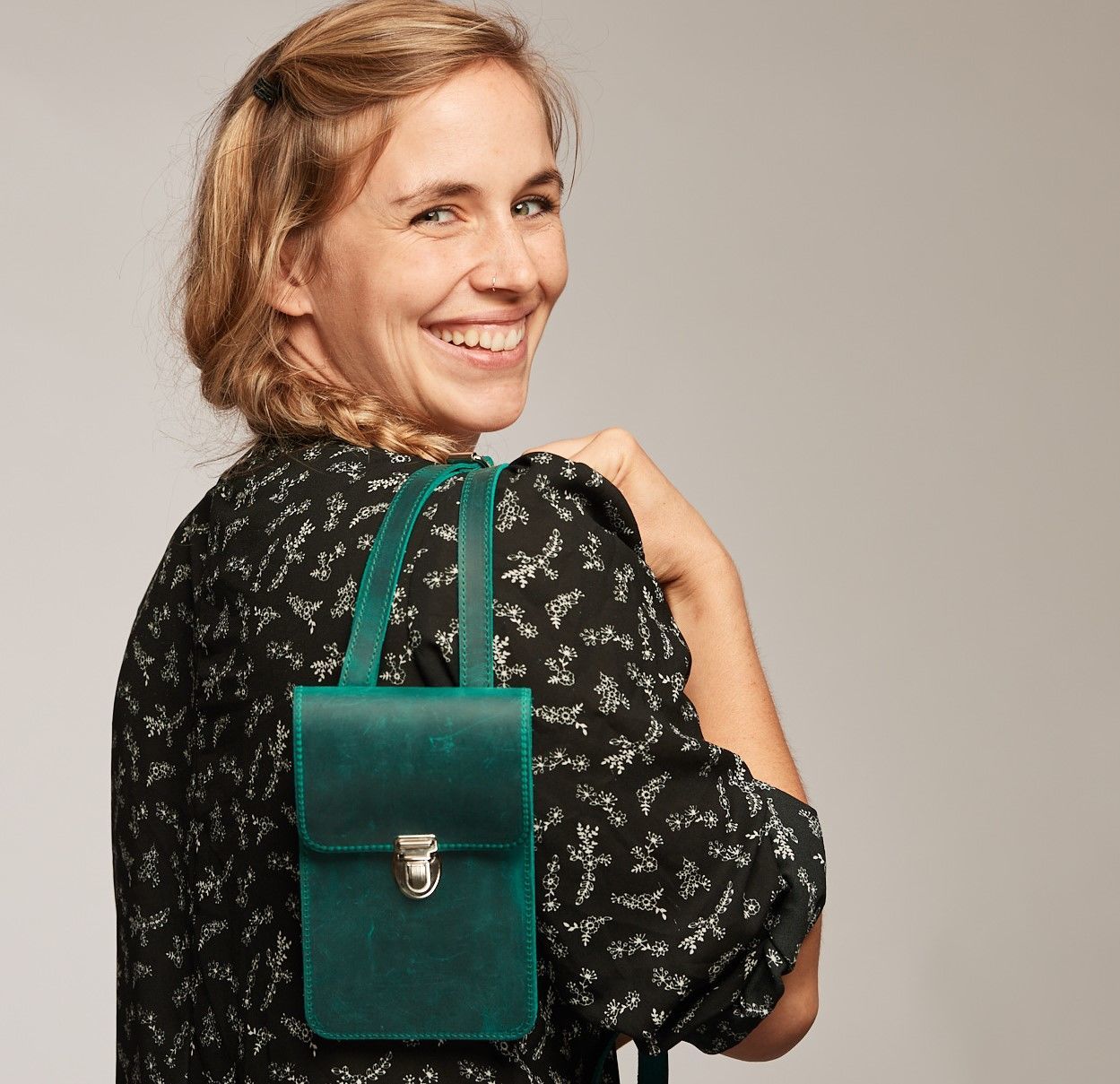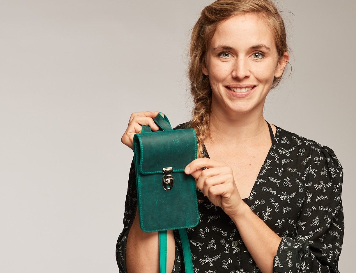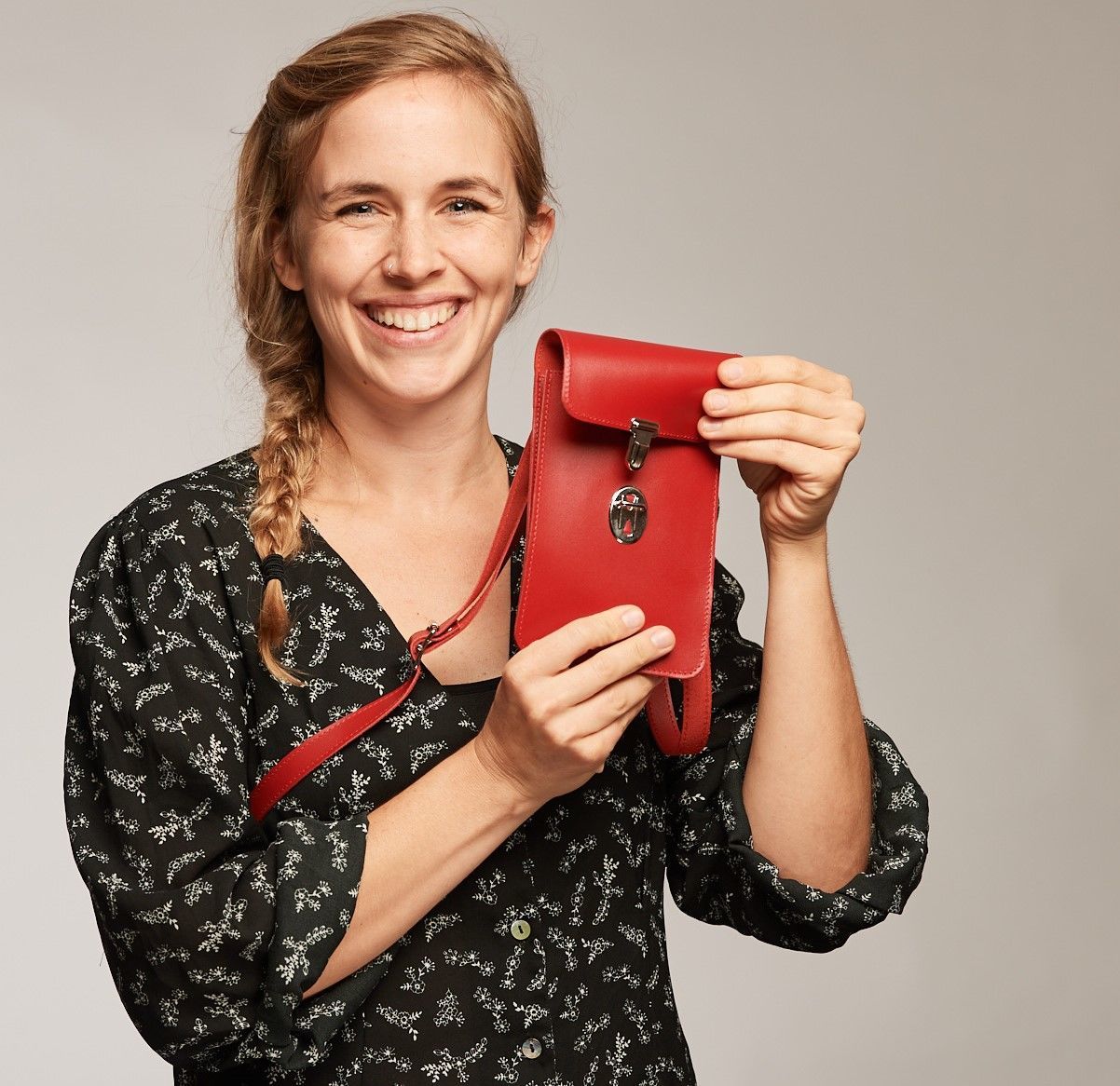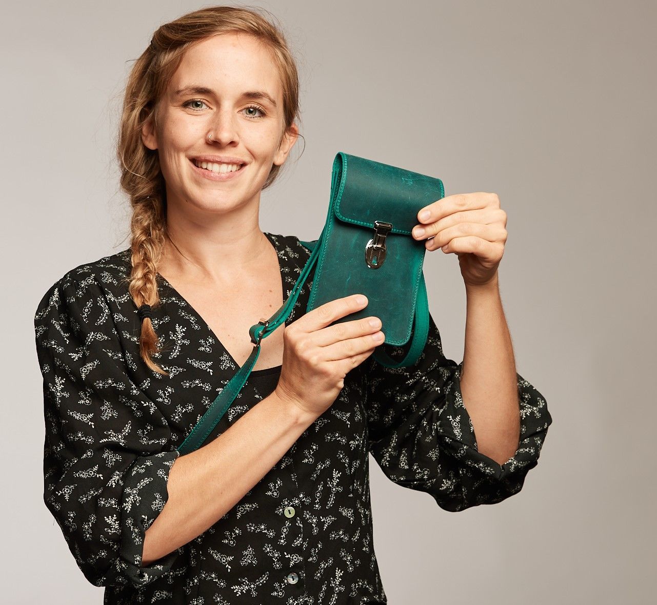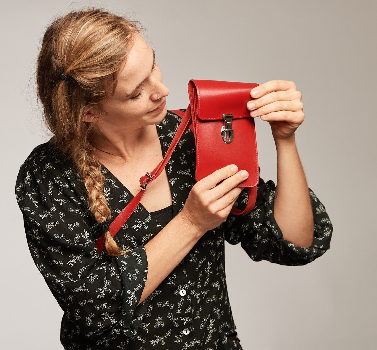 Der Gebrauch: Leder, Farben und Inhalt sind so vielfältig wie ihre Träger und Trägerinnen. Im Club, in der Bar, im Theater, zum Konzert oder auf Reisen: In der Handytasche ist alles gut aufgehoben und mit der typischen papoutsi!-Schnalle sicher verstaut.