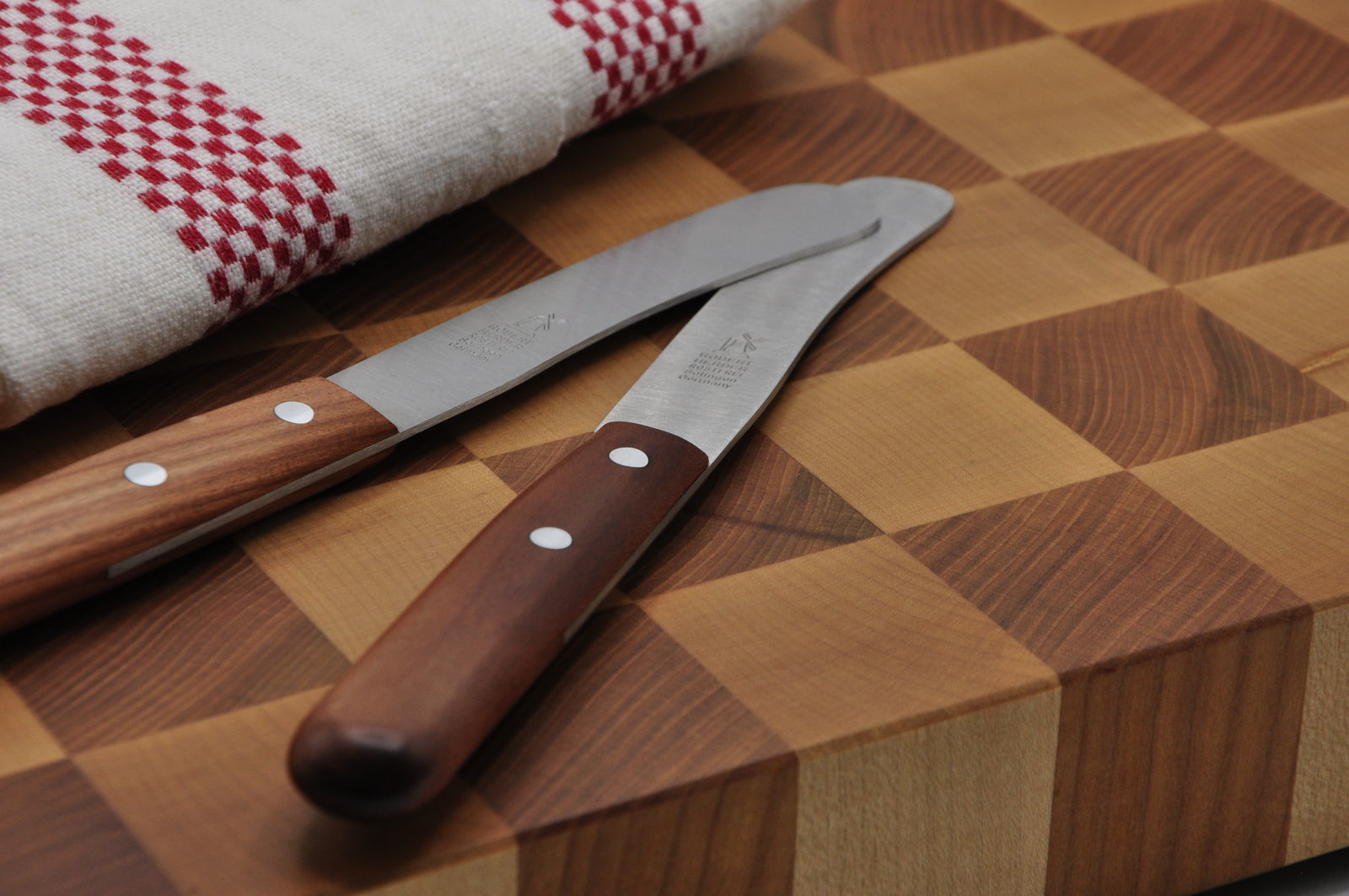 Die massiven Schneidebretter aus Stirnholz gibt es jetzt wieder in Ahorn, Kirsche, Eiche und geräucherter Eiche. Die kleine Holzwerkstatt in Mecklenburg-Vorpommern hat wieder ein paar Meisterstücke vorbeigebracht.