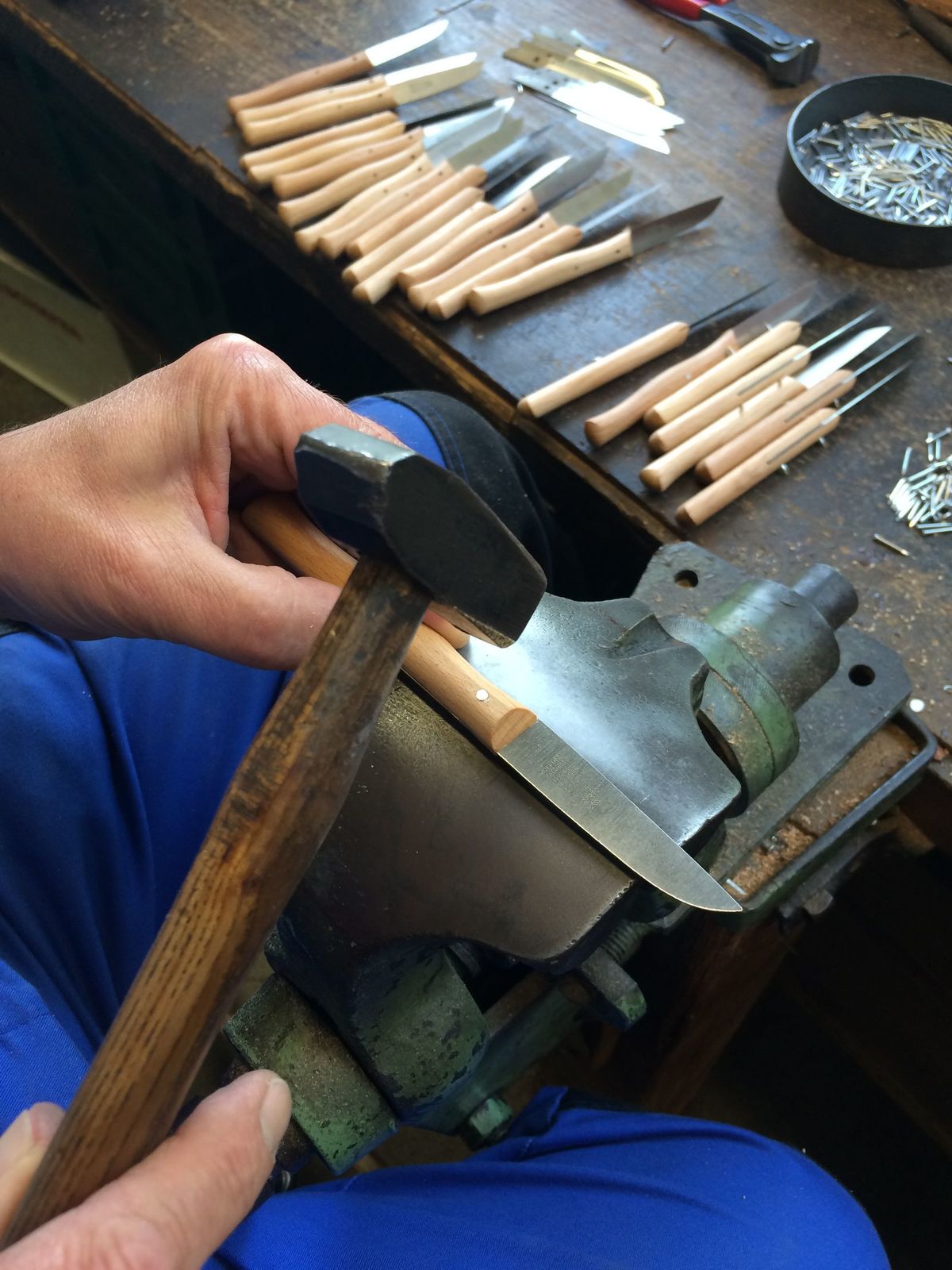 Längs der Holzfaser geschnitten, gehobelt, geleimt, getrocknet, gedreht, gewachst, poliert. Dann noch die Griffmulden bearbeiten und die Füßchen montieren. So entstehen in echter und mühsamer Handarbeit aus mit bedacht ausgewählten Hölzern wunderschöne Unikate.