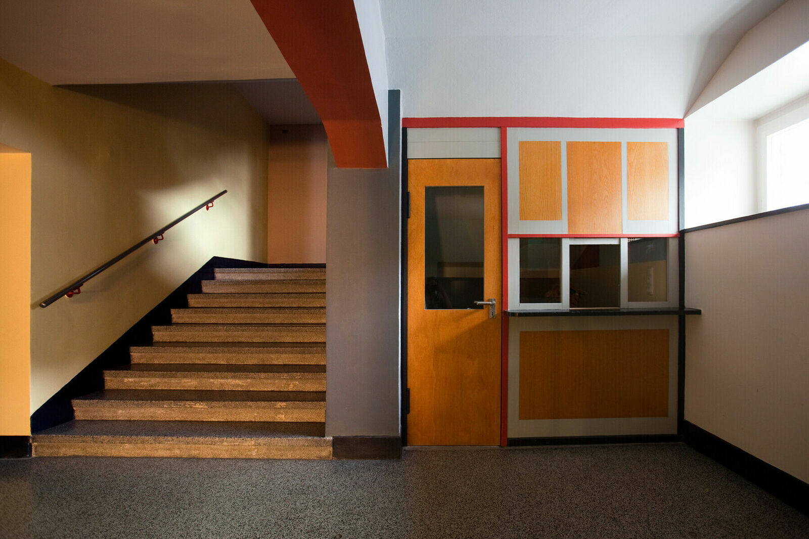 Die gesamte Inneneinrichtung und auch die Gestaltung wurde von den Dessauer Werkstätten übernommen: Stoffe, Möbel, Lampen, Türgriffe und Schriftzüge waren Teil der Arbeiten. Auch technisch wagte Alfred Arndt modernes. Das Haus des Volkes wurde über die Abwärme aus Elektrizitätswerk von Franz Itting beheizt. Die Zuluft wurde über die Stahlbetonstützen geführt. Über den Turm erfolgte die Abluft.