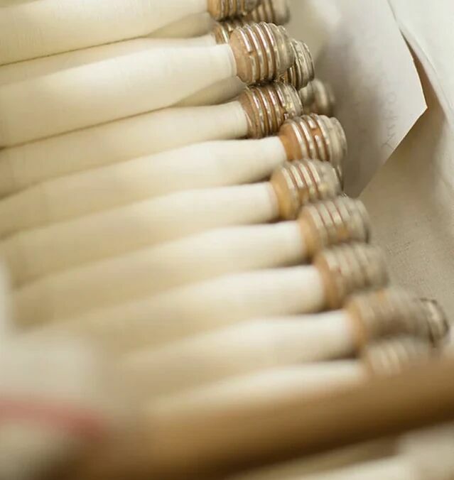 Die Geschichte von Hoffmann reicht über ein Jahrhundert zurück. Gegründet im Jahr 1905, ist das Unternehmen tief verwurzelt in der Textilregion Oberlausitz – einer Gegend, in der das Weben mehr als ein Beruf war: Es war Lebensinhalt. Vom ersten Tag an standen hochwertige Jacquardstoffe, Damaste und feine Leinengewebe im Mittelpunkt der Produktion. Diese Qualität sprach sich schnell herum – sogar bis nach England, wo Hoffmann-Leinen besonders gefragt war. Trotz politischer Umbrüche, Wirtschaftskrisen und Planwirtschaft hat sich das Unternehmen immer wieder neu erfunden – ohne seine Wurzeln zu verlieren. Nach der Reprivatisierung in den 1990er Jahren wurde die Produktion von Reinleinen wieder aufgenommen – mit großem Erfolg.