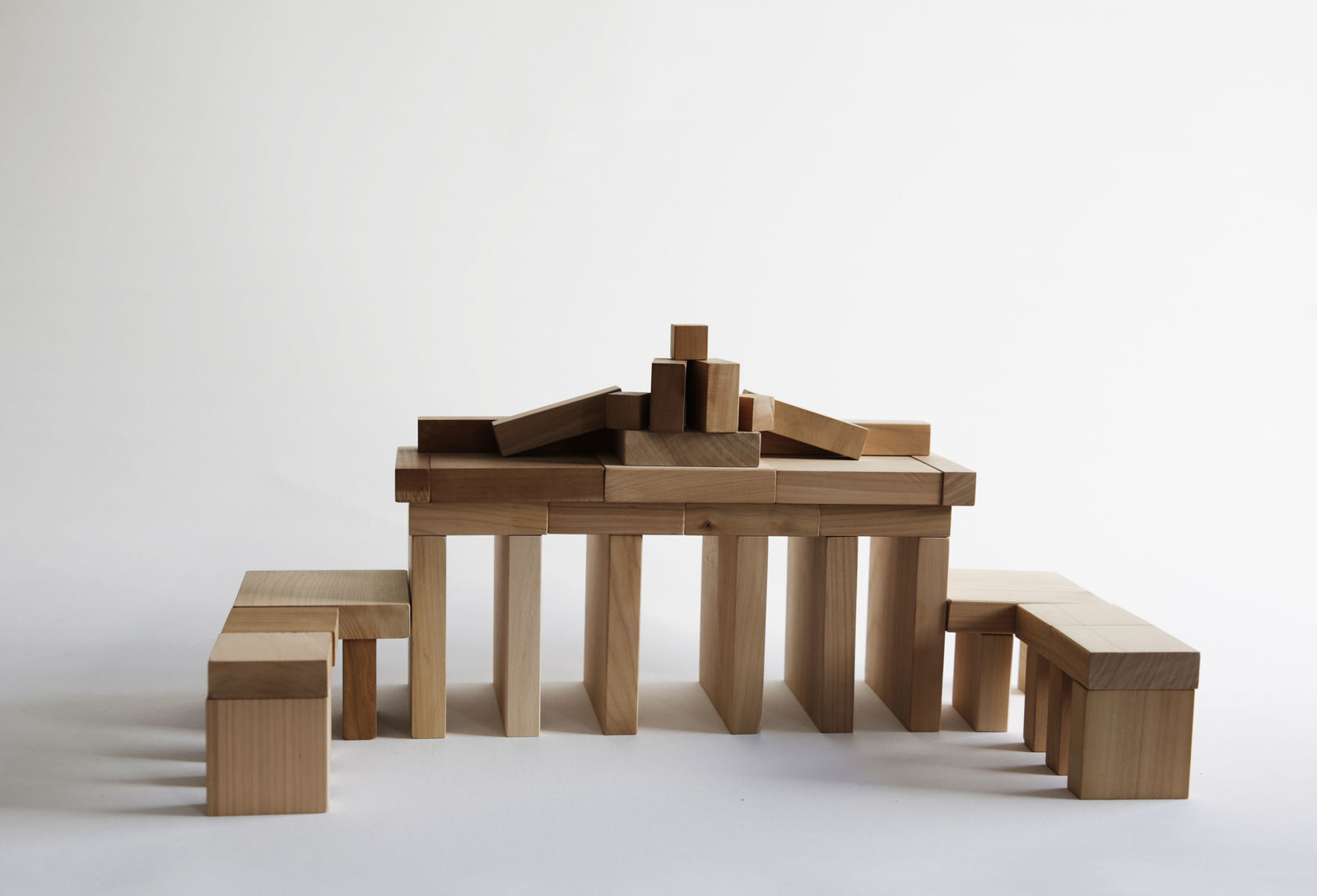 Used as a modular system for children, PLATTENBAU playfully promotes sensorimotor skills, aesthetic perception and spatial and inventive imagery. Used in everyday school life, it can be used as a working and illustrative model to convey content through high levels of abstraction of the elements and support the transfer between areas of teaching in a clear and tangible way. Adults use it as an aid to the presentation and structuring of abstract models or simply as a sensual and mathematical gimmick.