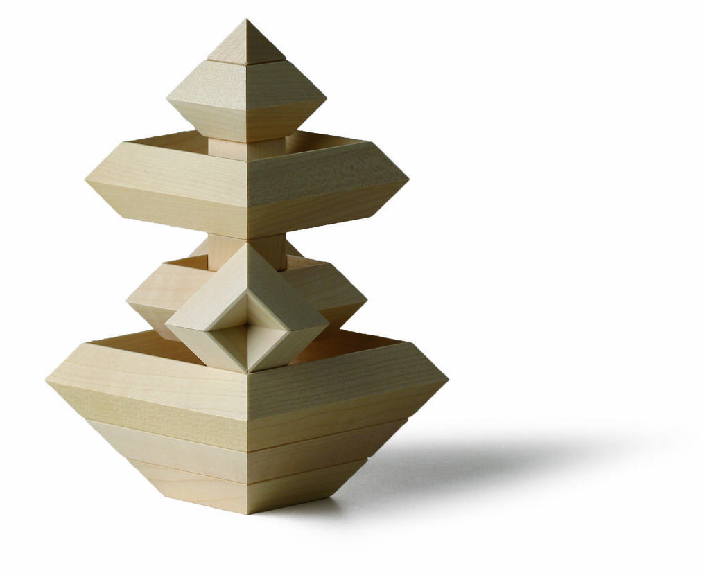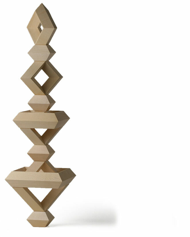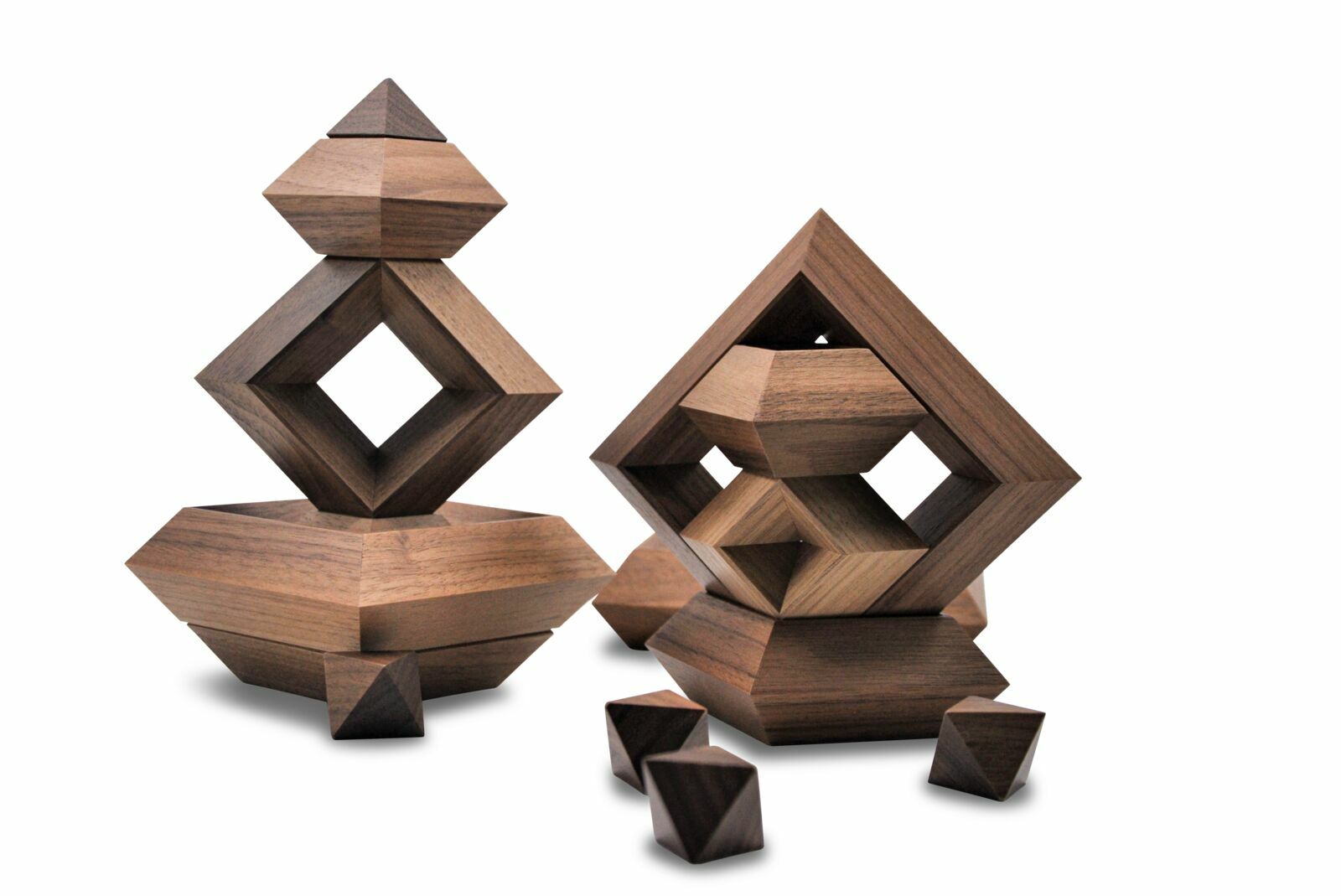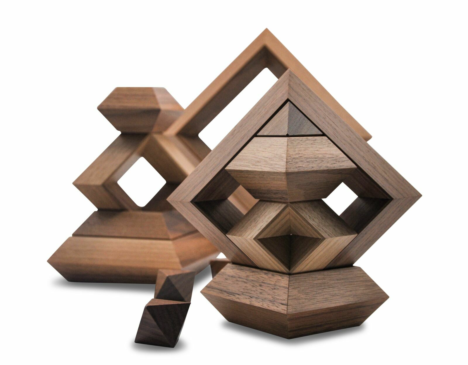 Das Original von Peer Clahsen ist wahrlich der „Diamant“ unter den Spielobjekten. Was in Japan Mathematiker beschäftigt hat und längst als Edu-Toy, oder auch intelligentes Spielzeug, ein Spieletrend für alle Generationen darstellt, sollten die Europäer heute endlich wiederentdecken. Ein in 15 Teile zerlegbarer Oktaeder, dessen Einzelteile sich perfekt zu neuen Variationen zusammenfinden und zu faszinierenden Gebilden emporheben. Ein Spiel für jedes Alter und so facettenreich wie der geschliffene Edelstein selbst. Besonders edel präsentiert sich die Ausführung in exklusivem Nussbaum.