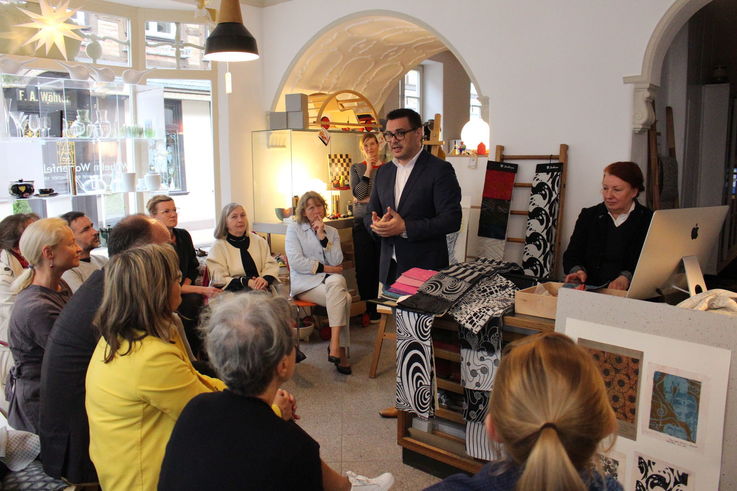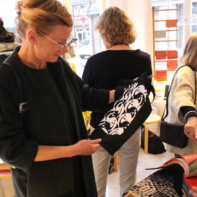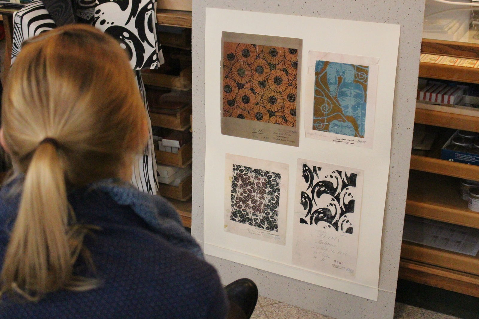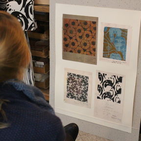 Vor Ort werden besondere Stoffe vorgestellt. Materialität und künstlerische Motivauswahl wird näher beleuchtet.